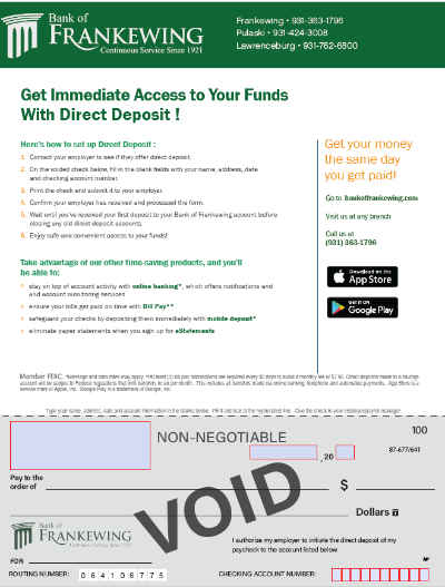 Get Immediate Access to Your Funds With Direct Deposit!